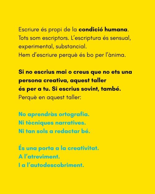 L’objectiu d’aquest taller és oferir als participants les eines i els recursos necessaris per desenvolupar les seves habilitats narratives, fomentar l’expressió personal i potenciar el gust per l’escriptura.