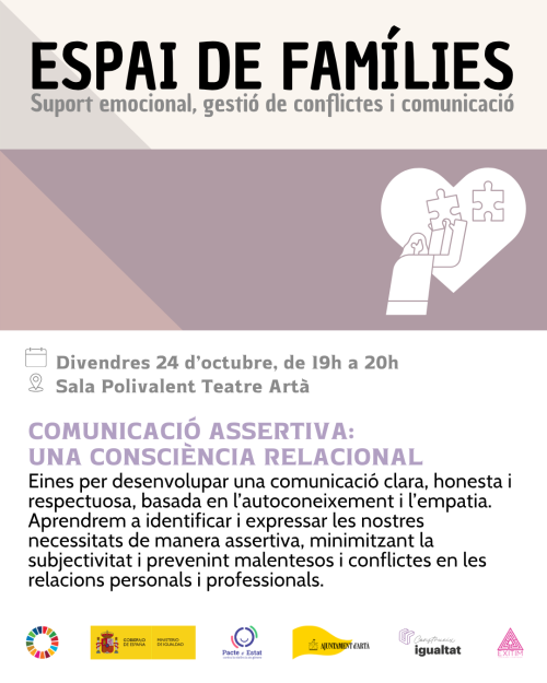 Una sessió per millorar la manera com ens expressem, identificar les nostres necessitats i prevenir conflictes des del respecte i l’empatia.