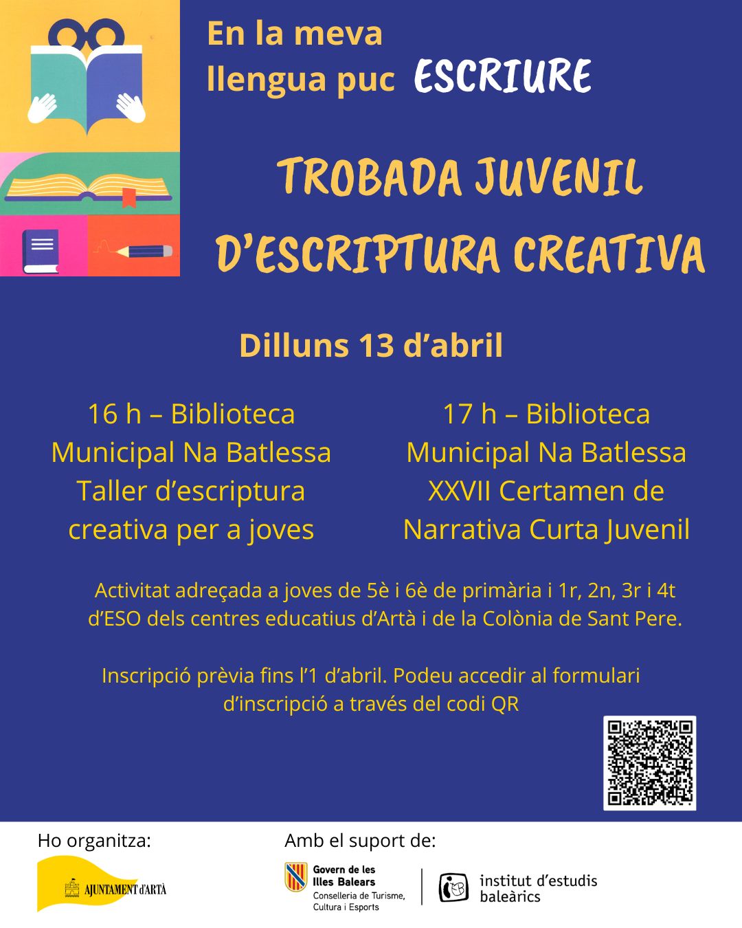Activitat adreçada a joves de 5è i 6è de primària i 1r, 2n, 3r i 4t d’ESO dels centres educatius d’Artà i de la Colònia de Sant Pere. Organitzada amb el suport de l'Institut d'Estudis Baleàrics.