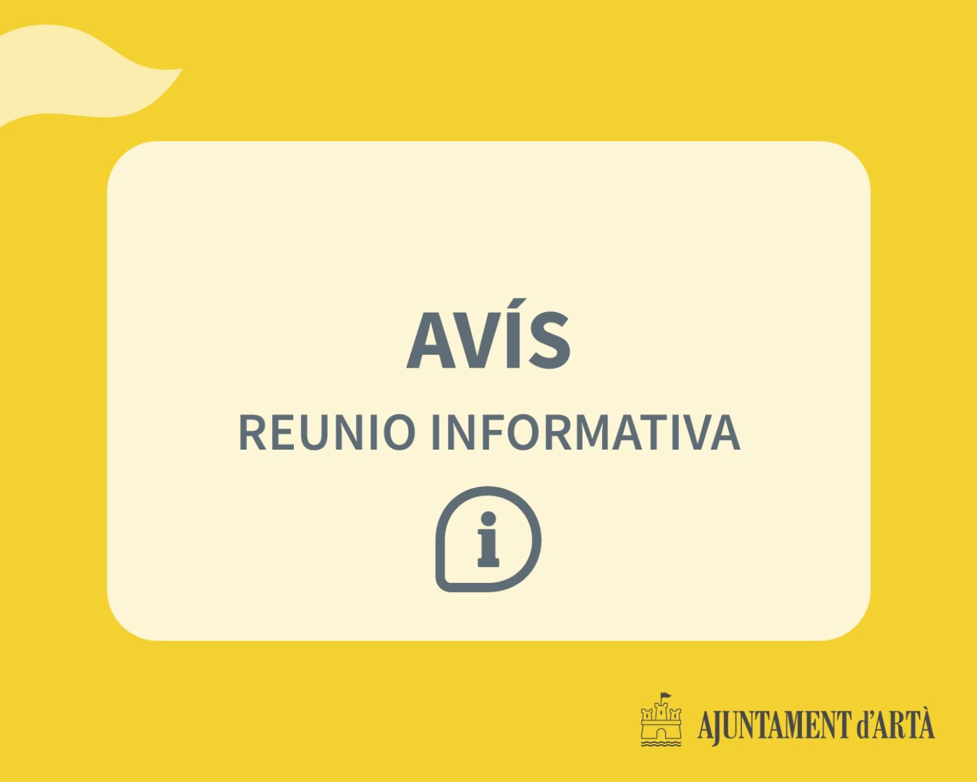 L’Ajuntament d’Artà convoca una reunió informativa, adreçada als veïnats i veïnades de la Colònia de Sant Pere, per explicar la situació actual de l’aigua a la zona i les propostes per a la seva gestió. La trobada tendrà lloc dijous 30 d’octubre a les 20.30 h, a l’edifici municipal on s’ubica el Club de la Tercera Edat de la Colònia de Sant Pere. L’Ajuntament convida totes les persones residents a assistir-hi per conèixer de primera mà l’estat actual del servei i les actuacions previstes.