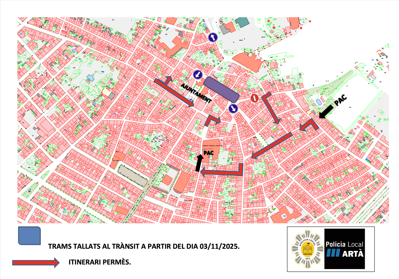 A causa de l’execució d'aquestes obres, es produiran talls temporals de trànsit en els trams afectats, i per això es reordenarà la circulació de la zona. Adjuntam aquí el mapa de circulació previst que ens ha facilitat la Policia Local.