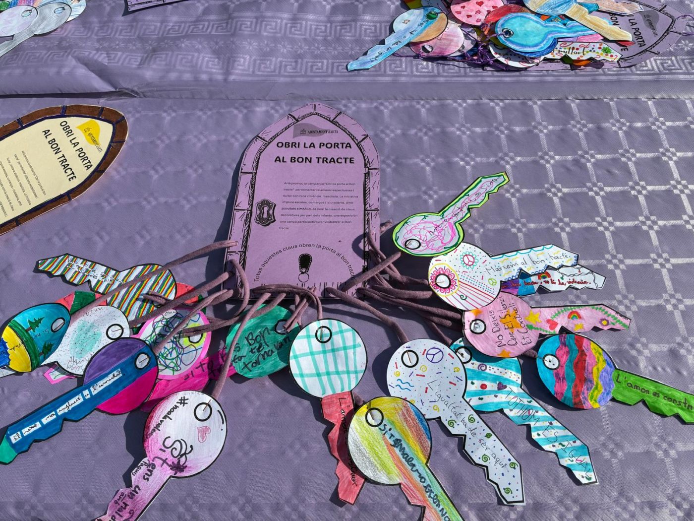 Durant les darreres setmanes, a les aules s’ha treballat l’activitat “Tracta’m bé”, que ha convidat els nins i nines a reflexionar sobre el bon tracte com a camí per prevenir actituds masclistes i conductes de violència. L’activitat ha consistit a elaborar claus amb missatges que “obren la porta al bon tracte”, i el resultat final —una porta simbòlica i un conjunt de claus amb frases positives— es repartirà a comerços i empreses del municipi per fer arribar aquest missatge a tota la comunitat.