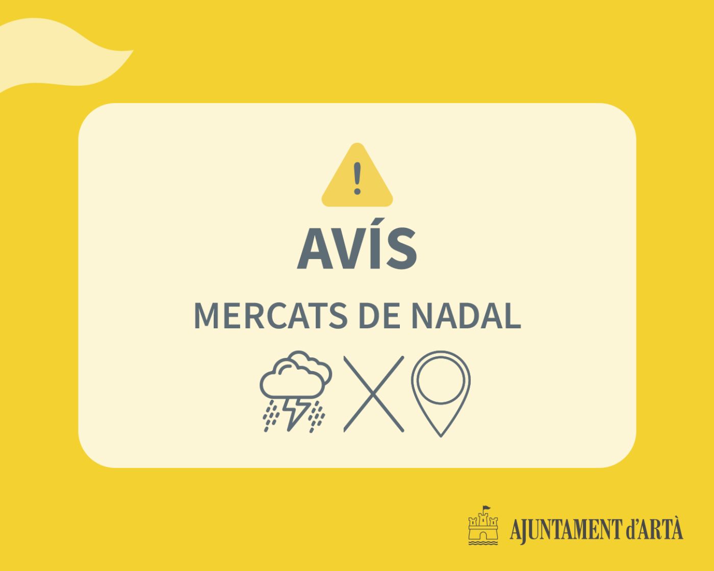 A causa de la previsió de mal temps, es fan els següents canvis als mercadets de Nadal previstos per a demà dissabte, 20 de desembre: