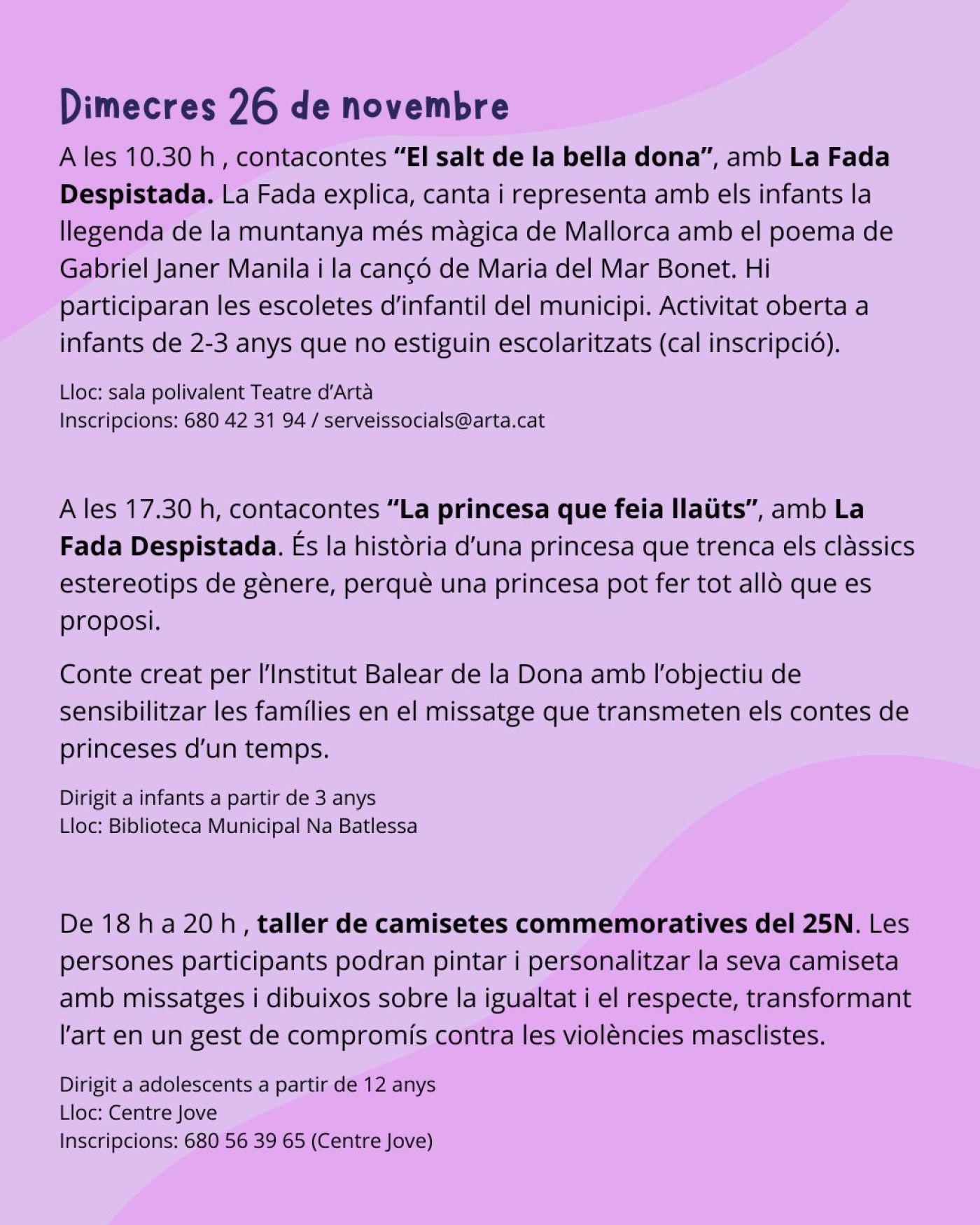 L’Ajuntament d’Artà convida tota la ciutadania a participar en aquesta programació per construir, entre totes i tots, una comunitat més justa, segura i igualitària.