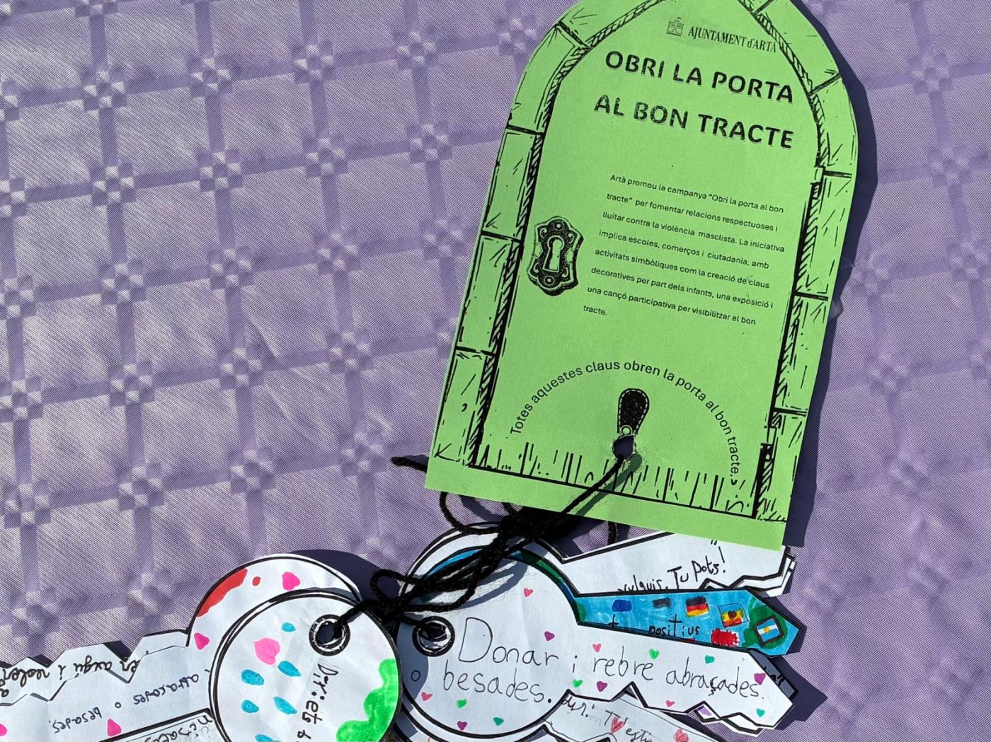 Durant les darreres setmanes, a les aules s’ha treballat l’activitat “Tracta’m bé”, que ha convidat els nins i nines a reflexionar sobre el bon tracte com a camí per prevenir actituds masclistes i conductes de violència. L’activitat ha consistit a elaborar claus amb missatges que “obren la porta al bon tracte”, i el resultat final —una porta simbòlica i un conjunt de claus amb frases positives— es repartirà a comerços i empreses del municipi per fer arribar aquest missatge a tota la comunitat.