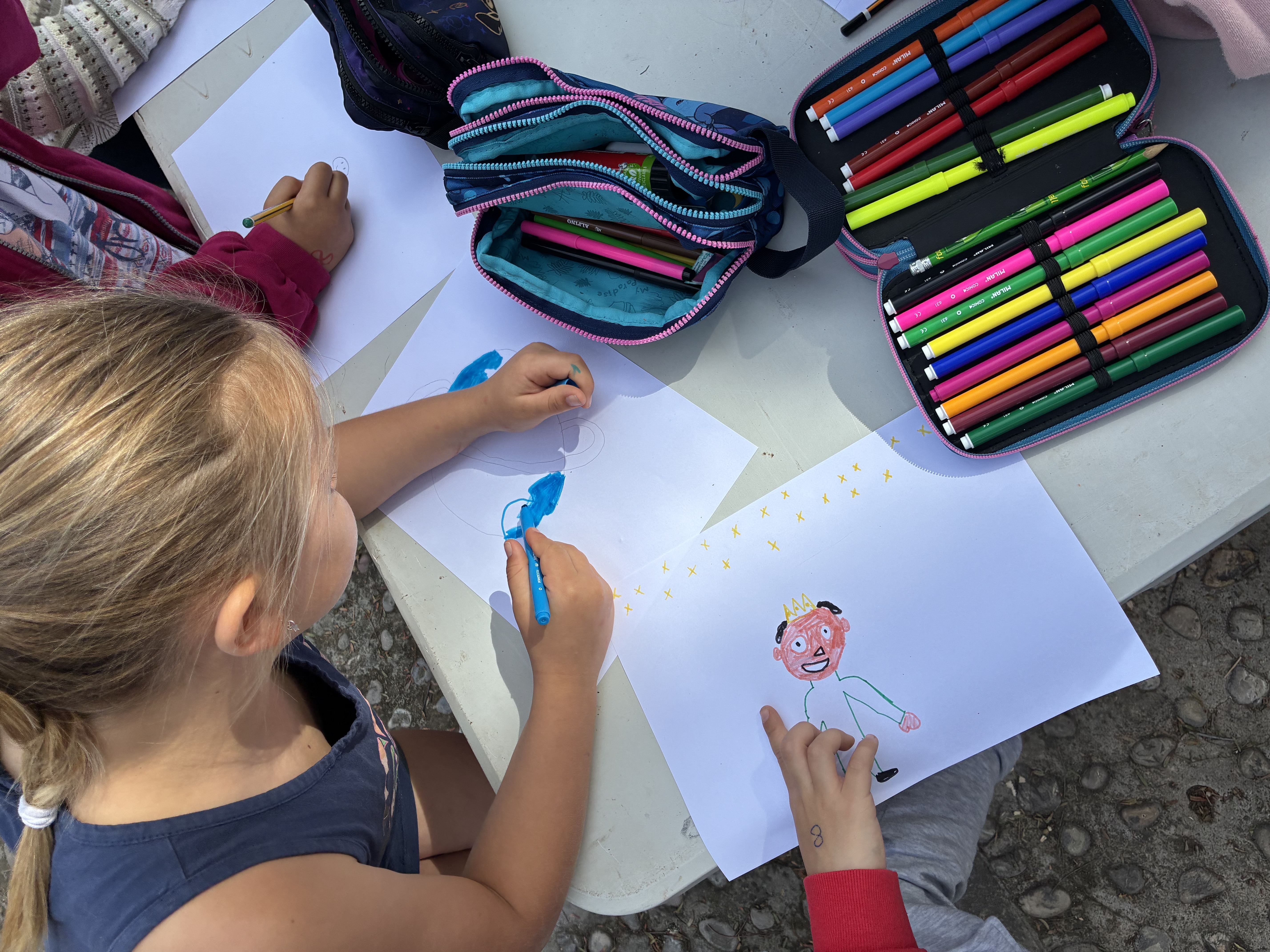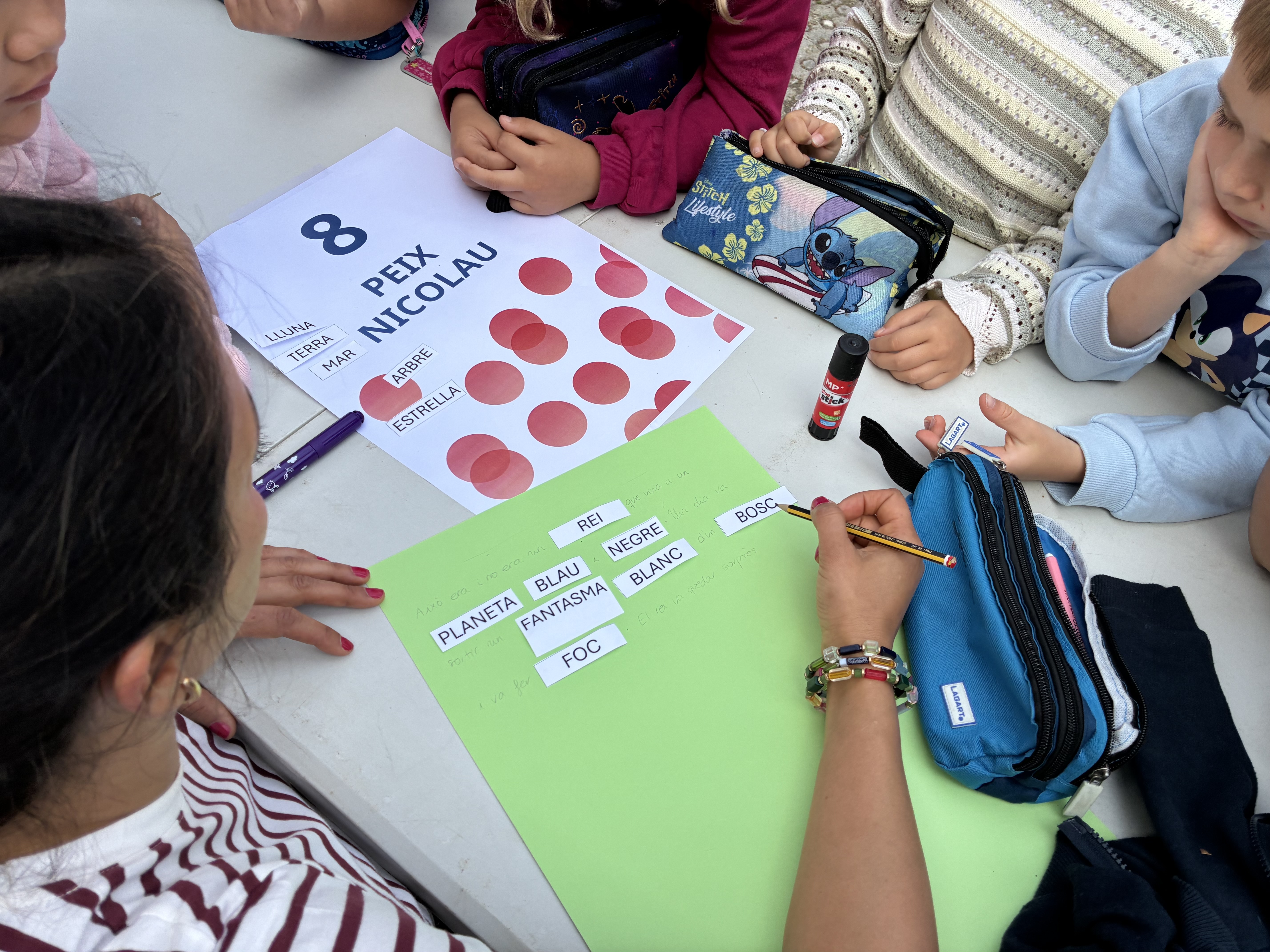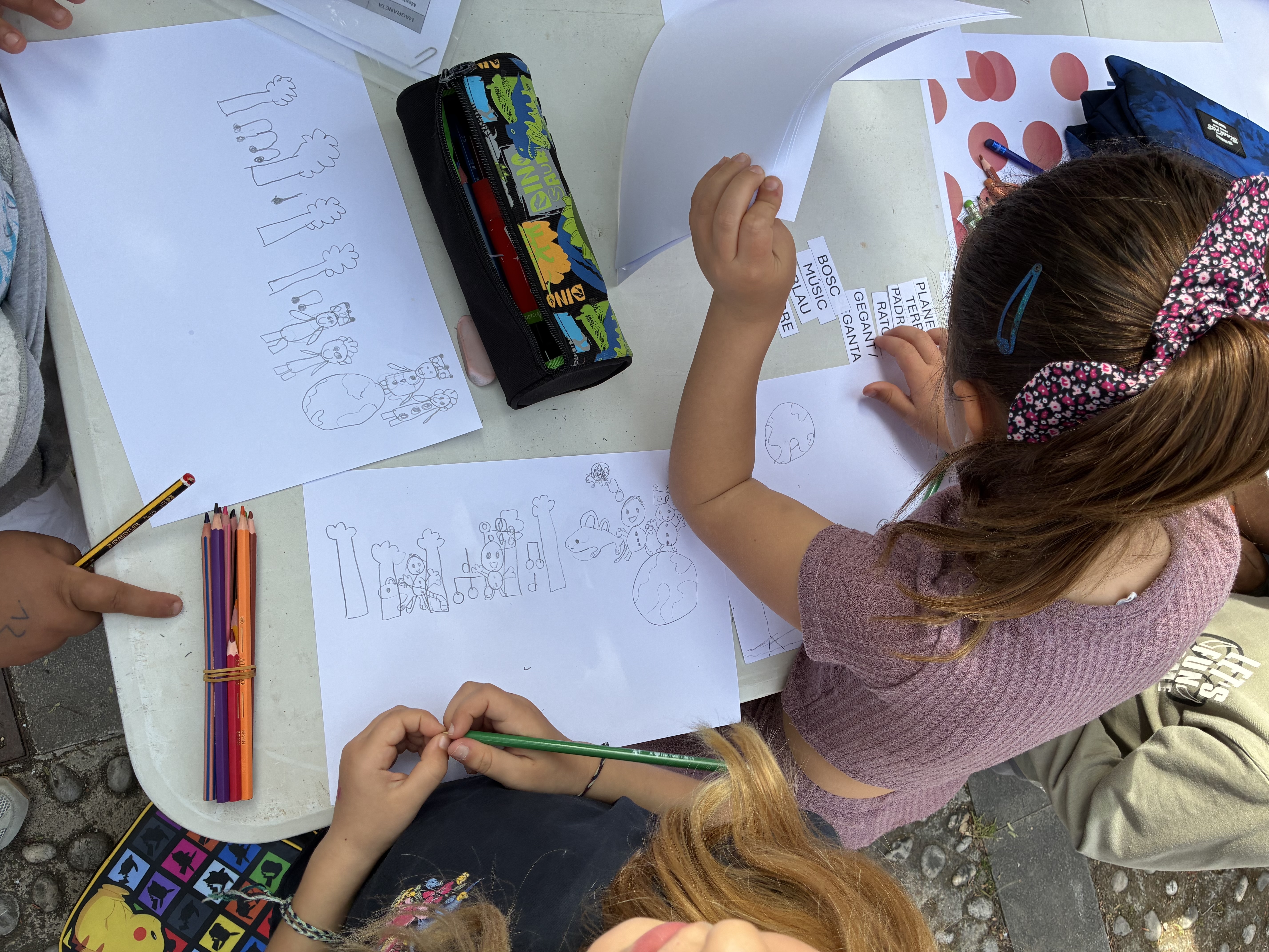 Prop de 150 infants de 1r i 2n de primària han participat en una jornada que ha combinat una sessió de contacontes amb la creació col·lectiva d’històries. Organitzats en grups mixtos amb alumnat de tots els centres, els nins i nines han elaborat relats conjunts a partir de paraules proposades i dibuixos per il·lustrar les històries, fomentant la creativitat i el treball cooperatiu.