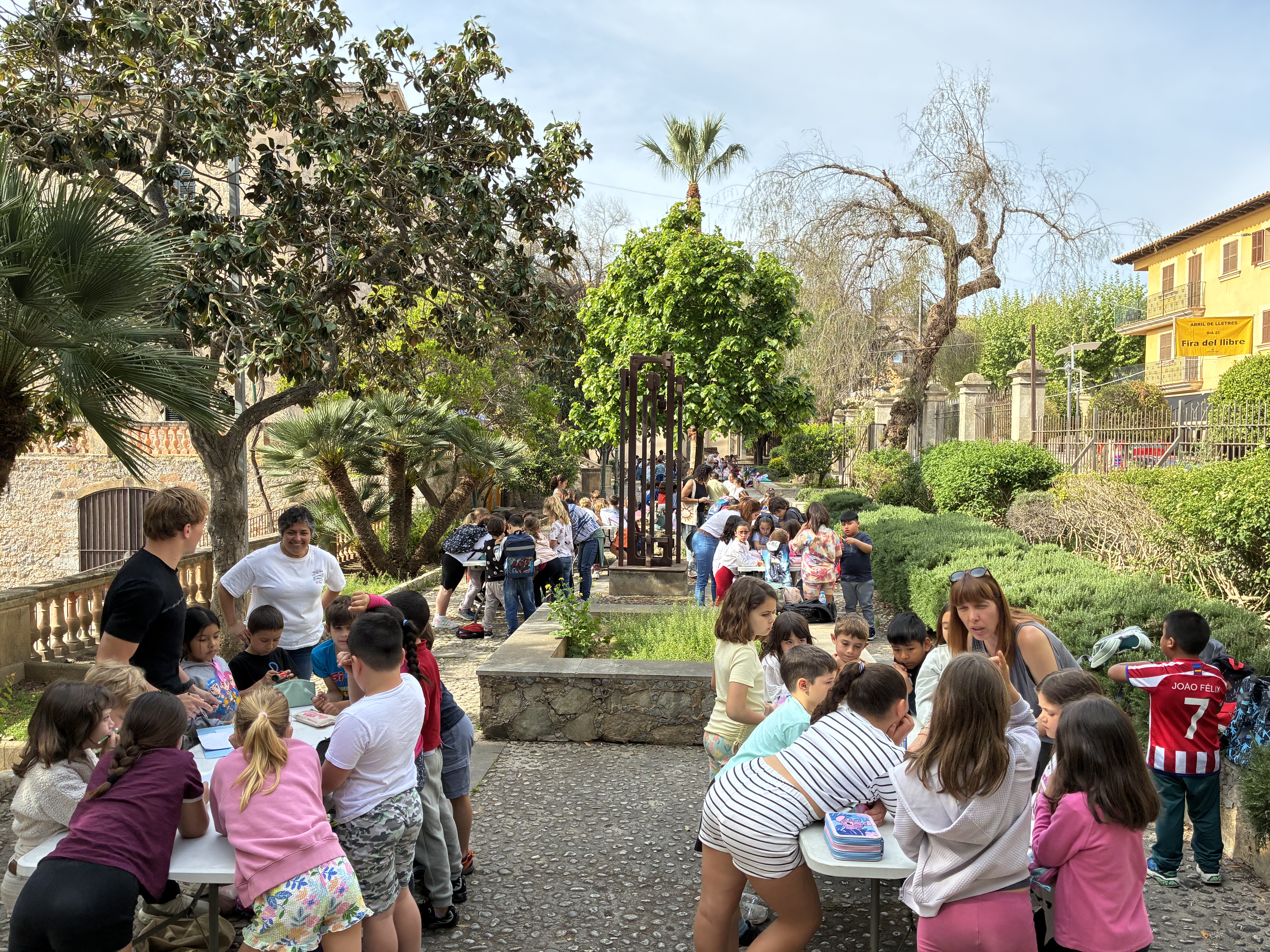 Els Jardins de Na Batlessa han acollit aquest dimecres una activitat educativa comunitària emmarcada dins el programa Abril de Lletres, organitzada per l’àrea de Participació Ciutadana i la Biblioteca Municipal amb la col·laboració dels centres educatius del poble.