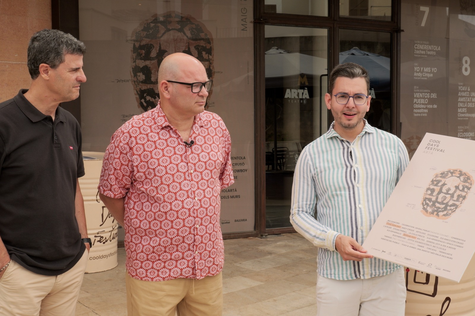 L’Ajuntament d’Artà ha presentat avui el cartell i la programació del Cool Days Festival 2026, que enguany arriba a la seva 21a edició i se celebrarà del 7 al 10 de maig. La presentació ha tingut lloc a l’exterior del Teatre d’Artà i ha comptat amb la presència del batle, Manolo Galán; el director del Teatre d’Artà i del festival, Josep Devesa; i el regidor d’Acció i Promoció Cultural, Toni Bonet.